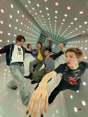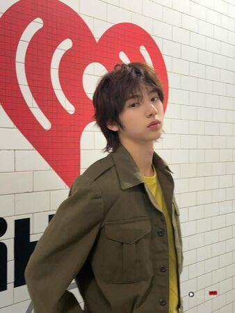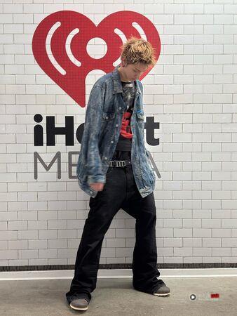 190公分的朴宇宙Martin,是团内的完美衣架子,也是最能消化多层次穿搭的人。下图他以长版丹宁衬衫搭配设计图案T-shirt叠穿,下身选择低腰裤与金属皮带,营造视觉焦点。虽然元素多,但整体干净俐落,是“街头风入门”最能参考的范本!